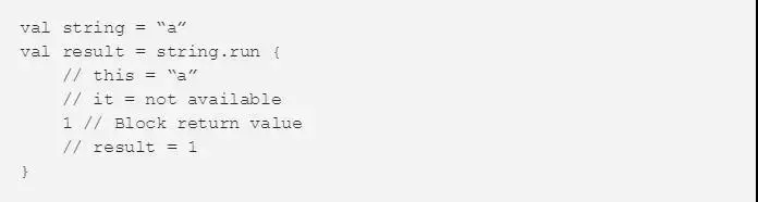 让我们运行一些标准的 Kotlin 函数!简短而强大,run,let,with 和 appy 都有一个接收器 (this),可能有一个参数 (it) 并可能有一个返回值。差异如下: