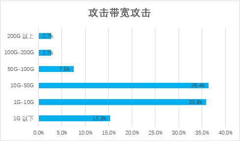 第二个特点是,大流量攻击越来越多,其中百G以上攻击占比逐年加大:
