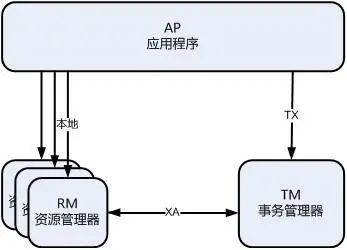 XA 协议描述了 TM 与 RM 之间的接口,允许多个资源在同一分布式事务中访问。