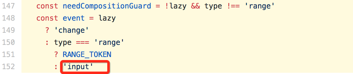 - v-model 实际上是监听了<input>控件的 input、compositionstart、compositionend 三个事件,在输入法组合过程中就直接返回不赋值