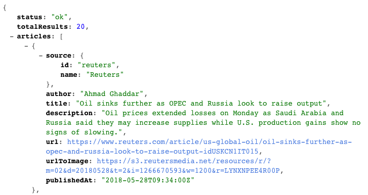 新闻源我们使用的是newsapi.org。你只要申请一个apiKey就能从他家获取json格式的头条新闻数据。至于详情的话需要用webview直接打开对应的新闻url。