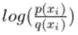 项。如果 q(x_i) 大于 p(x_i) 会怎样呢?此时这个项的值为负,因为小于 1 的值的对数为负。另一方面,如果 q(x_i) 总是小于 p(x_i),那么该项的值为正。如果 p(x_i)=q(x_i) 则该项的值为 0。然后,为了使这个值为期望值,你要用 p(x_i) 来给这个对数项加权。也就是说,p(x_i) 有更高概率的匹配区域比低 p(x_i) 概率的匹配区域更加重要。