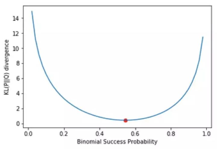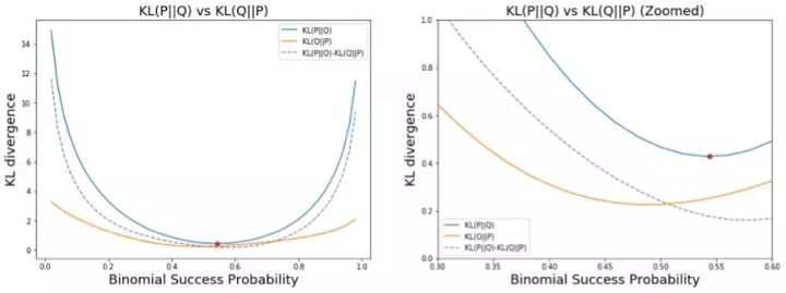 其中 q(x) 是近似分布,p(x) 是我们想要用 q(x) 匹配的真实分布。直观地说,这衡量的是给定任意分布偏离真实分布的程度。如果两个分布完全匹配,那么