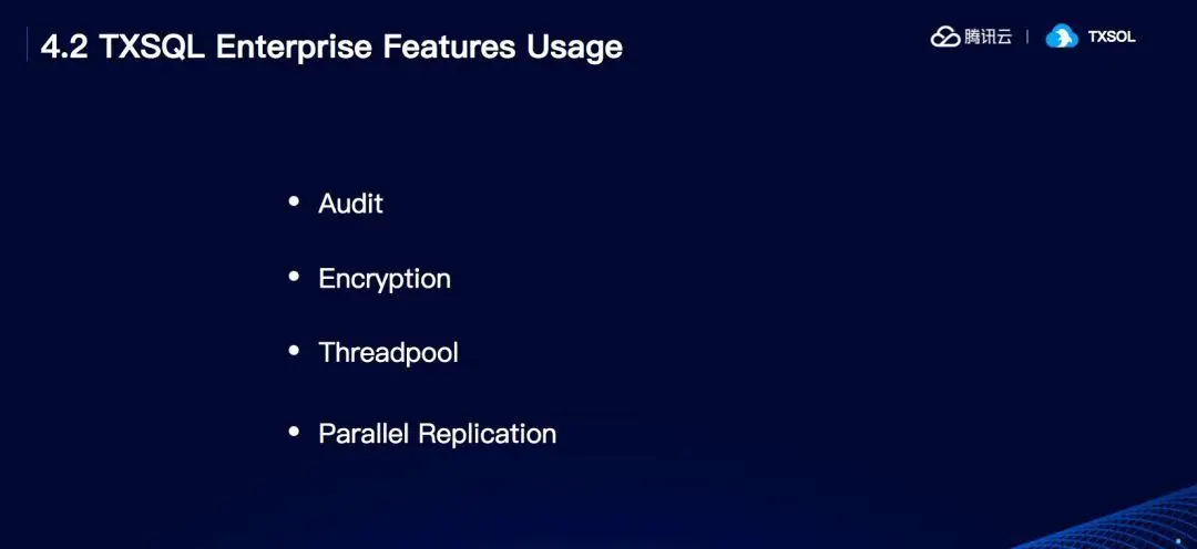 而在功能方面,我们实现了官方版本所没有的功能,比如加密、审计、线程池,并行复制。首先是审计功能,官方的版本是没有审计这个功能的,只有企业版才有,我们结合自己的实际情况,为了保证用户的性能,我们做了一个audit的插件,从而保证性能的同时实现了用户所需要的功能。