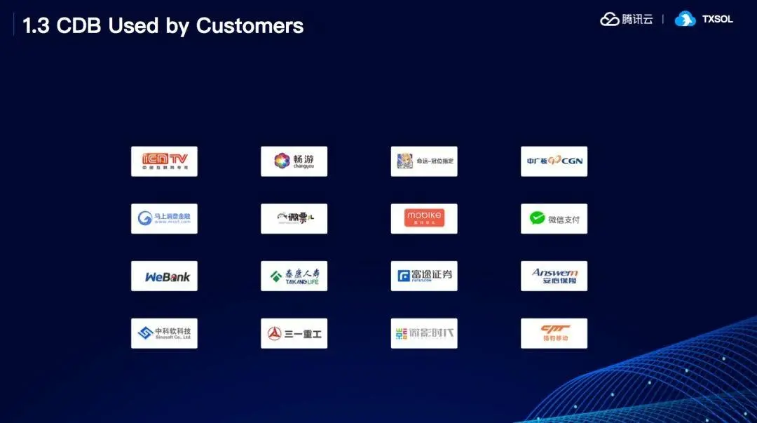腾讯云的CDB服务渗透到了各行各业,包括银行、证券、物流,还有传统企业等都有腾讯云的客户,用户购买 CDB 后,会分配相应的主机、端口、用户名、密码等信息,用户通过这些信息可以直接联接到后台的数据库。