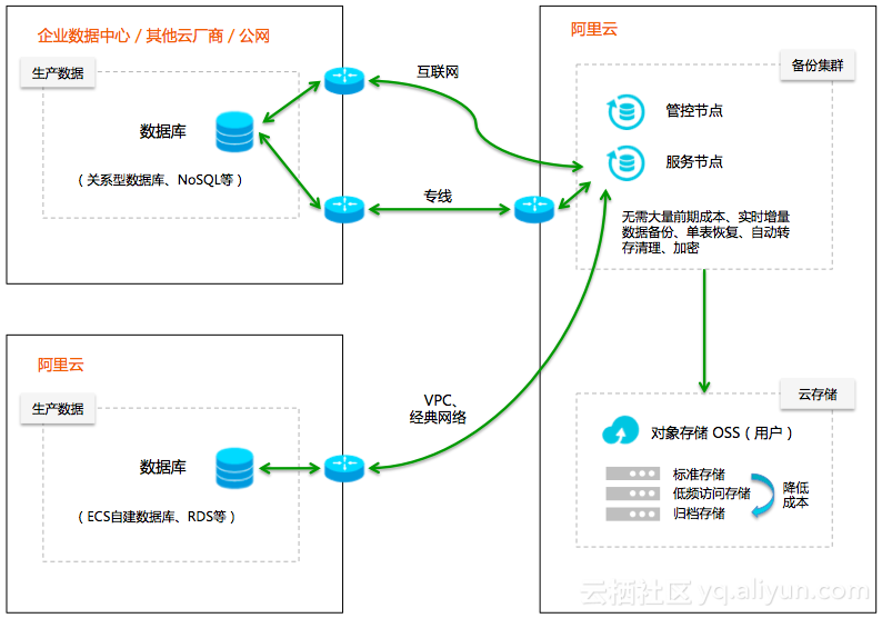 - 本地IDC数据库通过混合云专线或公网将数据备份上云