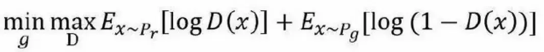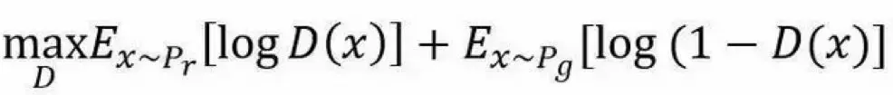 假设 P_r 和 P_g 分别代表真实数据的分布与生成数据的分布,这样判别模型的目标函数可以表示为: