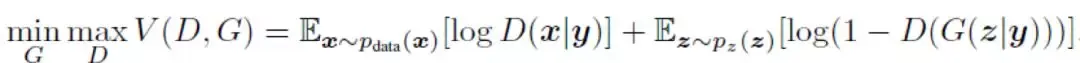 CGAN(Conditional Generative Adversarial Nets),针对 GAN 本身不可控的缺点,加入监督信息,训练从无监督变成有监督,指导 GAN 网络进行生成。例如输入分类的标签,可生成相应标签的图像。这样 CGAN 的目标方程可以转换为: