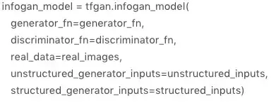 # 通过 tfgan.infogan_model,定义 infogan 模型