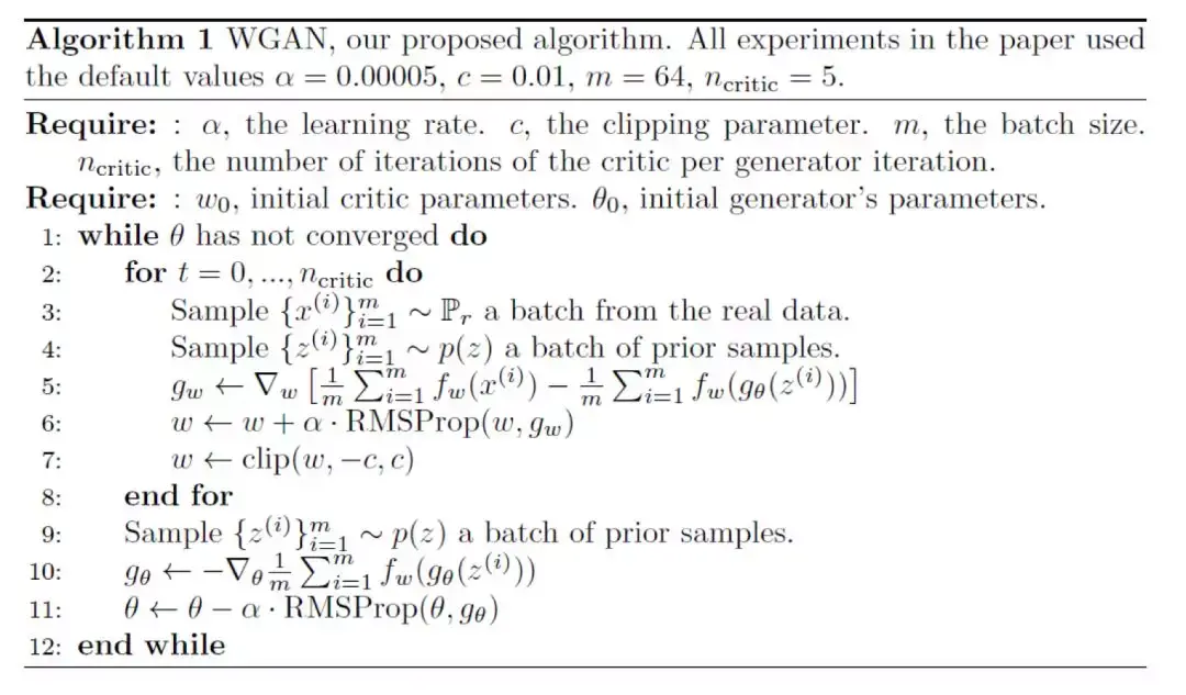 WGAN 的算法结构如下所示: