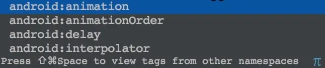 <layoutAnimation xmlns:android="http://schemas.android.com/apk/res/android"