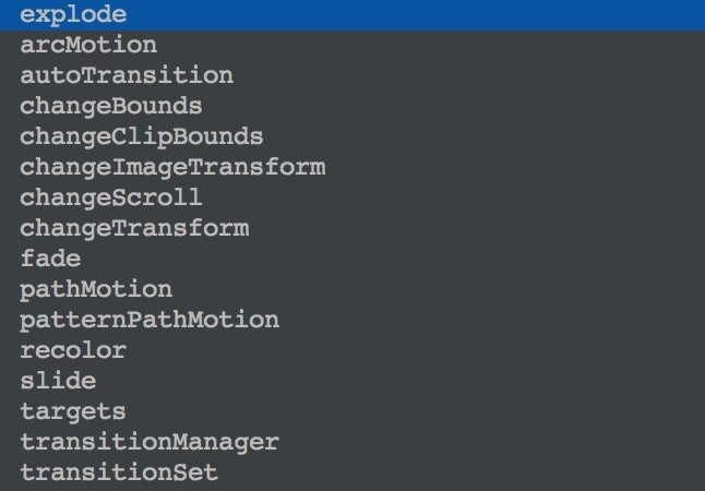 Transition explode = TransitionInflater.from(this).inflateTransition(R.transition.explode);