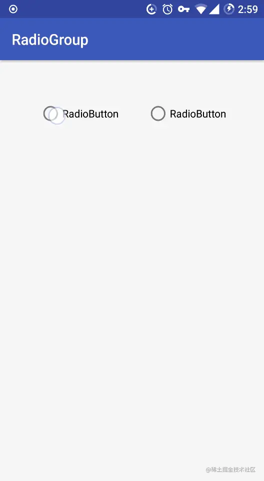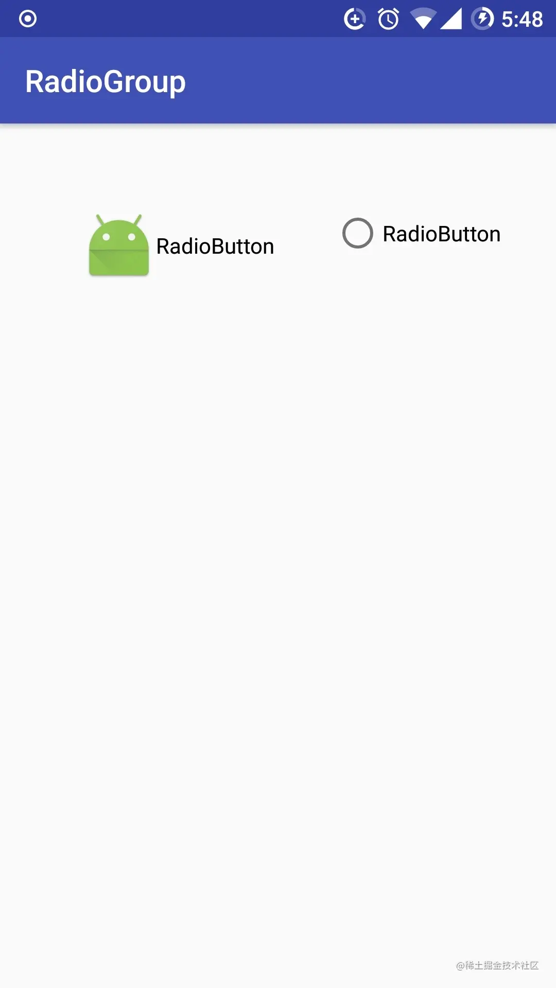 既然是单选, 那肯定不止一个选择按钮吧. 这里就要涉及到另一个类RadioGroup了. 只有被RadioGroup包括的RadioButton之间才存在单选的关系.