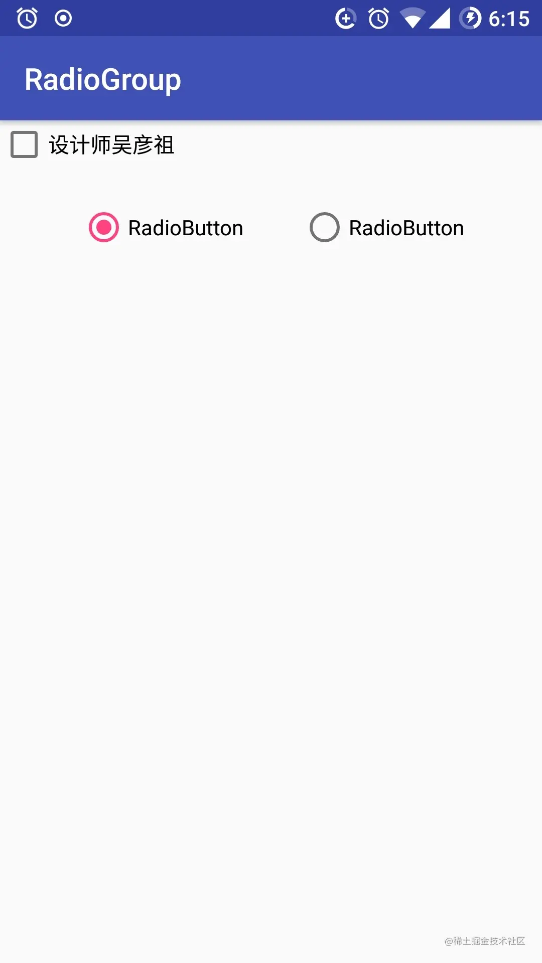 android:checkedButton="@id/radioButton3" // 设置默认被选中的按钮是那个