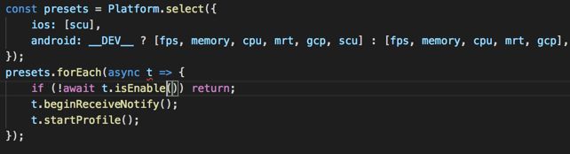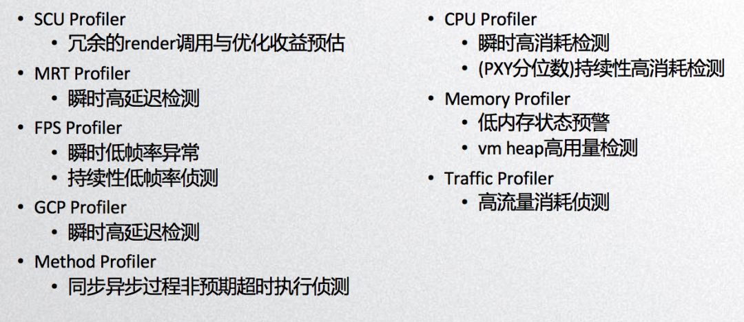 通常在设计上我们会对一些模块的初始化、数据处理和计算的关键体验环节设定执行耗时的限制,通过构建 AOP 样式的 decorator ,对同步函数和基于 Promise/async/await 协程的异步函数进行 trace 并统计是否实际执行耗时不符合设计要求的环节。