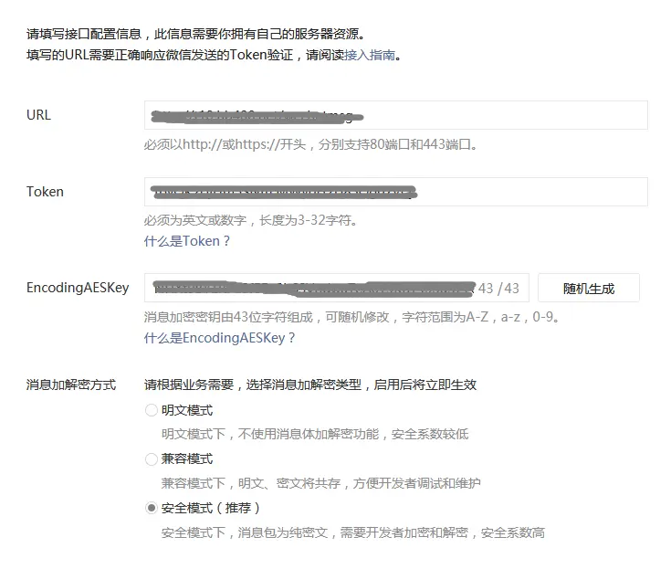 首先登录微信公众平台 https://mp.weixin.qq.com,在开发->基本配置中填写服务器配置(接收处理微信消息的地址)