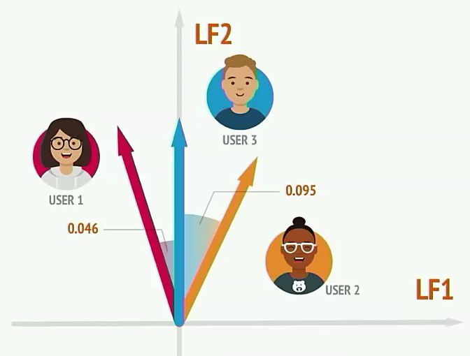从图中可以看出,用户1和3之间的夹角更小(0.046),也就是说二者的相似度比用户3和用户2之间的更高。
