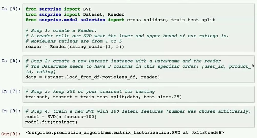 接着,我们要用到一个名为Surprise的库训练SVD,这一过程只需要四步。