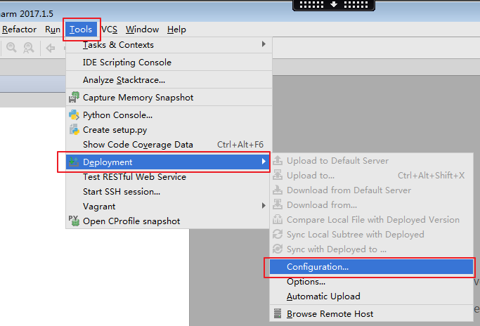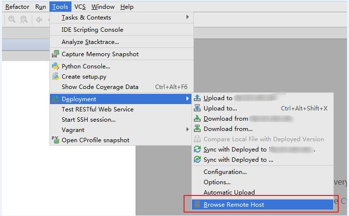 接下来,我们要连接远程服务器了。Tools -> Deployment -> Browse Remote Host