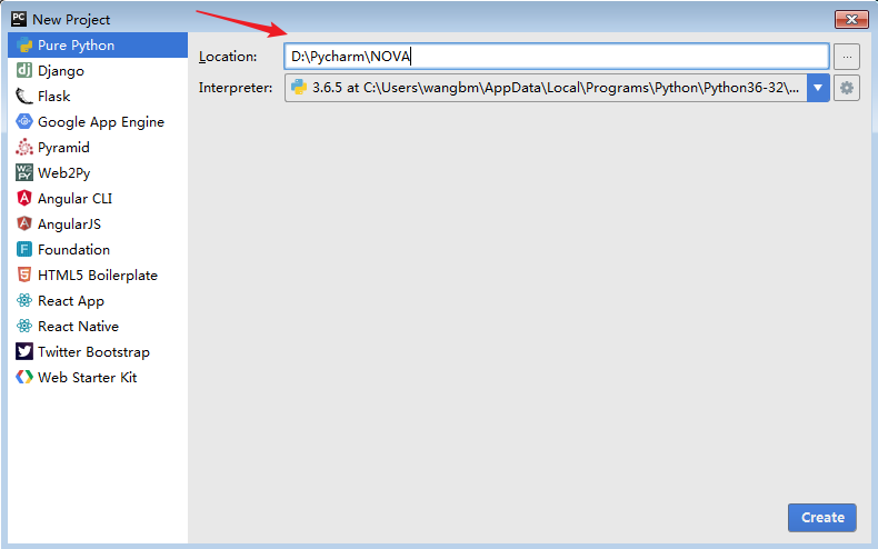 我这边的工程名是NOVA,请自行定义。
