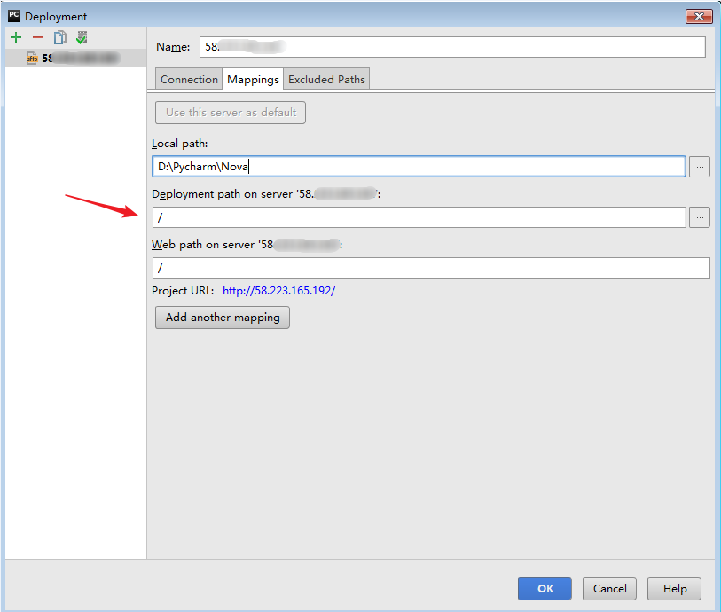 填写完成后,切换到Mappings选项卡,在箭头位置,填写 \