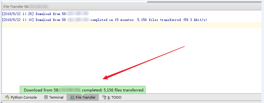点击OK后,会自动下载远程解释器。如果你的项目比较大,这个时间可能会比较久,请耐心等待。