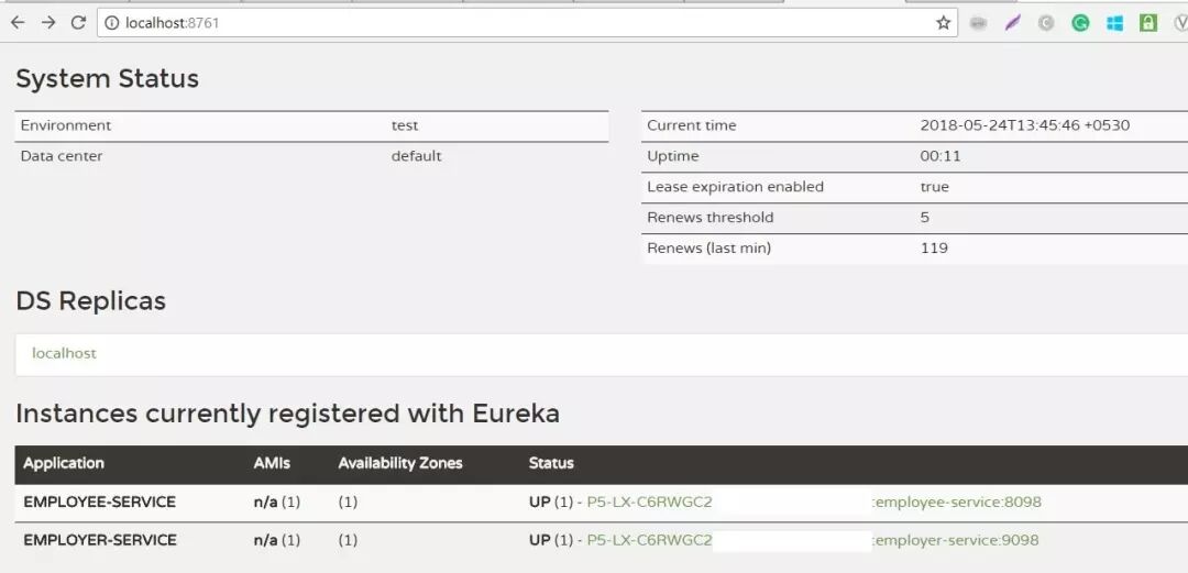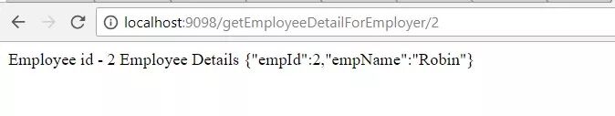 客户都注册了不同的名称。 这些名称将用于在其他客户端查找服务。 在我们的例子中,EMPLOYEE-SERVICE返回静态数据。 此数据在EMPLOYER SERVICE中获取并显示。员工服务
