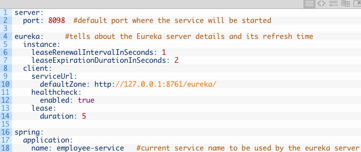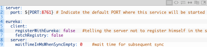 对于我们的演示目的,我们仅仅使用Eureka作为我们的服务注册服务器。 为此,您只需使用正确的依赖关系并在应用程序yaml或属性文件中指定Eureka属性。