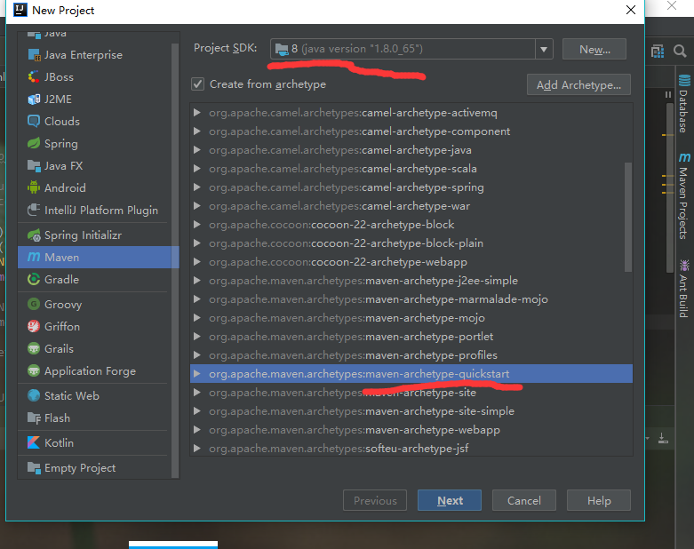 坑2:java版本不要用jdk9以上的版本,一开始我用的jdk10就报错,至于如何在IEDA里面jdk切换成其他版本,百度就行,网上有解决办法;quickstart和webapp都可以,我这里用的是quickstart模板。