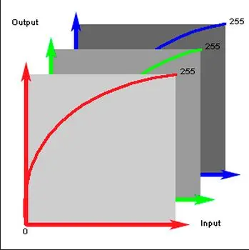 其中 R1、G1、B1 为原像素值,R2、G2、B2 为映射像素值,可以看出 1DLUT 的映射颜色值的每一个分量仅与其原始像素值的分量有关,用图像表示如下
