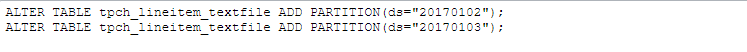 则可以使用以下DDL语句ADD PARTITION: