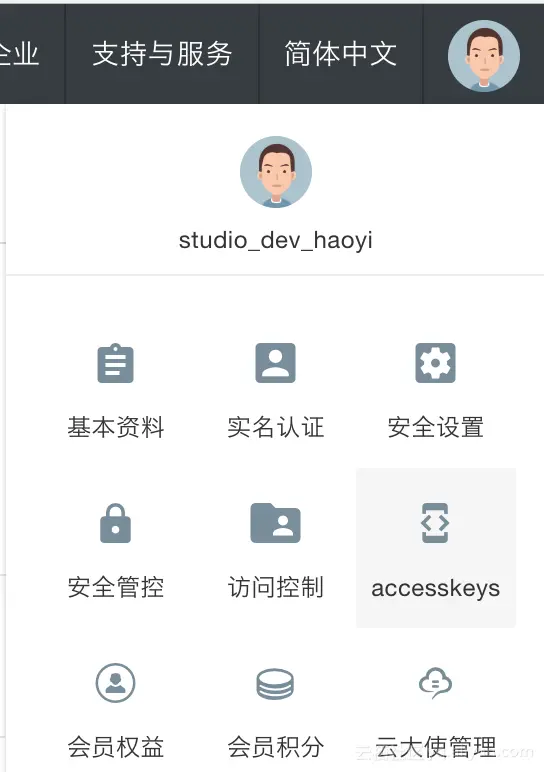 这是你与MaxCompute建立连接的鉴权信息,可点击个人信息里的accesskeys获取AK,如下图: