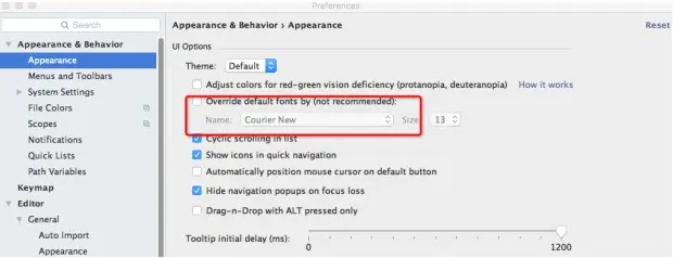 原因是Intellij Appearance中使用的字符集不支持中文,需要在Appearance & Behavior -> Appearance 下使用支持中文的字符集(Microsoft YaHei)或改为Default,如下所示: