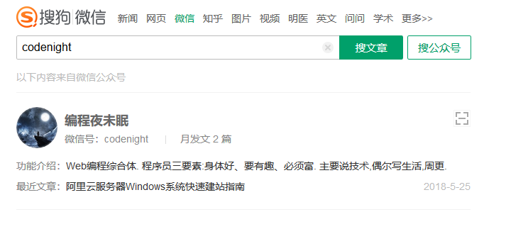 刚开始,只是想为公众号加上搜索功能,方便回复关键字查询历史文。在去掉一些早期七七八八的文章,能返回的搜索资源就更少了,而且技术占了大部分,这该有多么的单调,略显尴尬。对于搜索功能的添加,是需要把文章、链接一个个录入数据库的,有了文章基础数据,就可以编写搜索接口。一个个个录,是枯燥的重复,于是想到找一个微信文章收录平台,为自动获取提供可能,发现了搜狗搜索引擎有微信专栏。