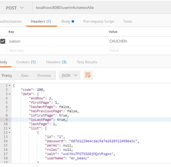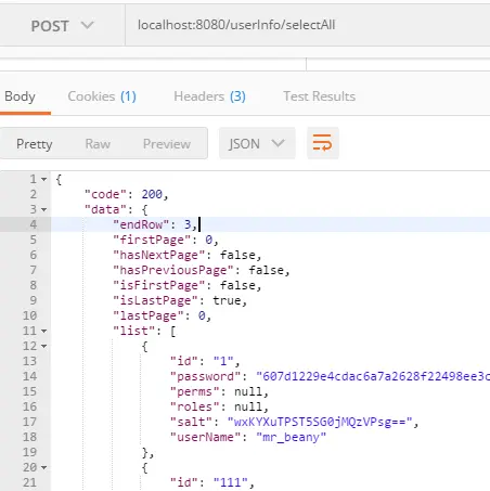 输入localhost:8080/userInfo/selectAll