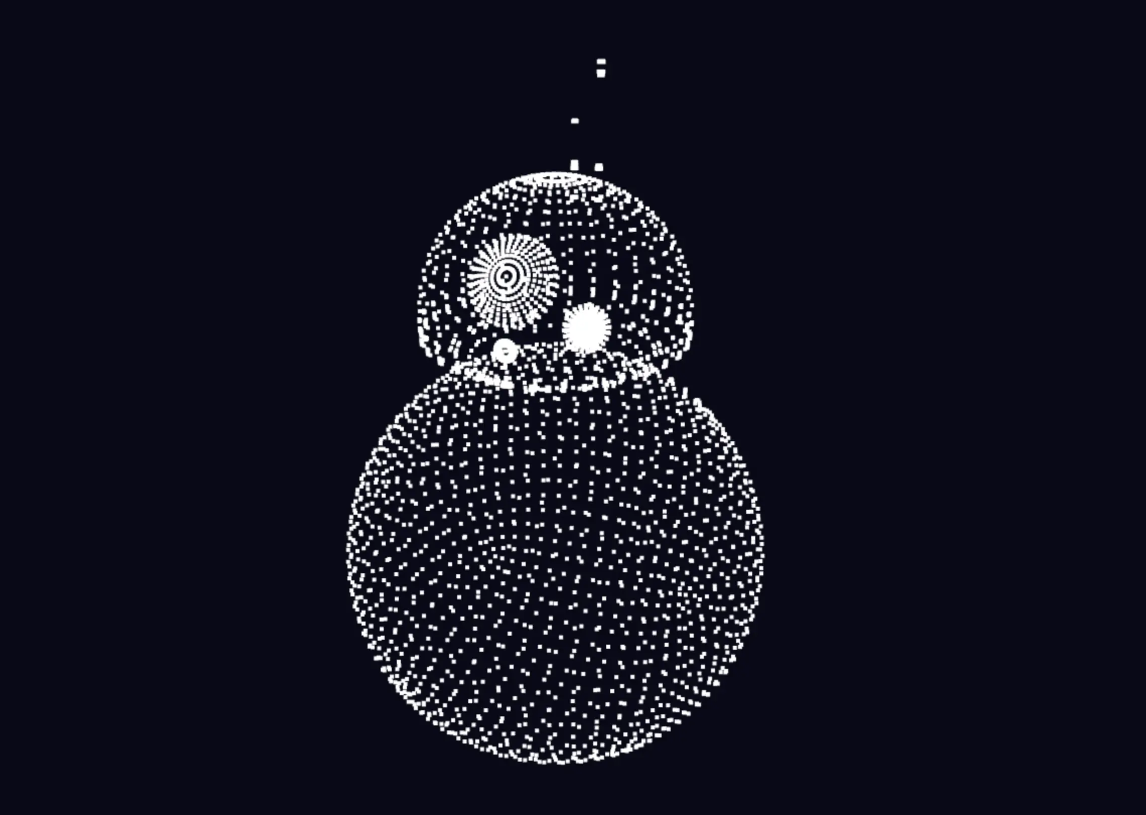 一成不变的彩色略显单调,再改造下粒子运行动画时候的属性值,在每轮动画结束后随机生成新的粒子颜色值,然后在粒子模型变换过程中,同时将旧颜色过渡到新颜色。