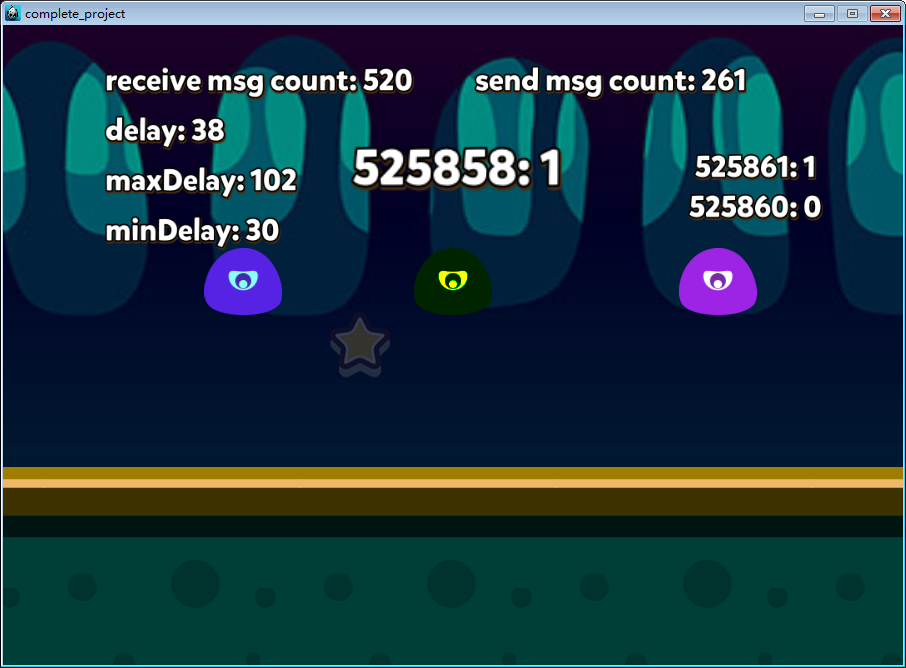 游戏进行中在创建星星、玩家进行向左、向右操作时,我们将这些操作广播给房间内其他玩家。界面上同步展示各个玩家的状态变化。