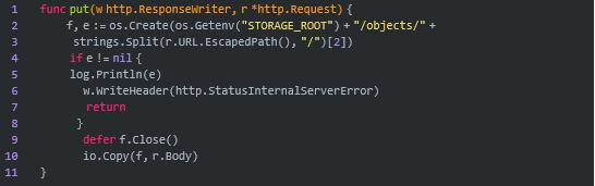 put函数首先获取URL中<object_name>的部分,r.URL成员变量记录了HTTP请求的URL,它的EscapedPath方法用于获取经过转义以后的路径部分,该路径的形式是/objects/<object_name>