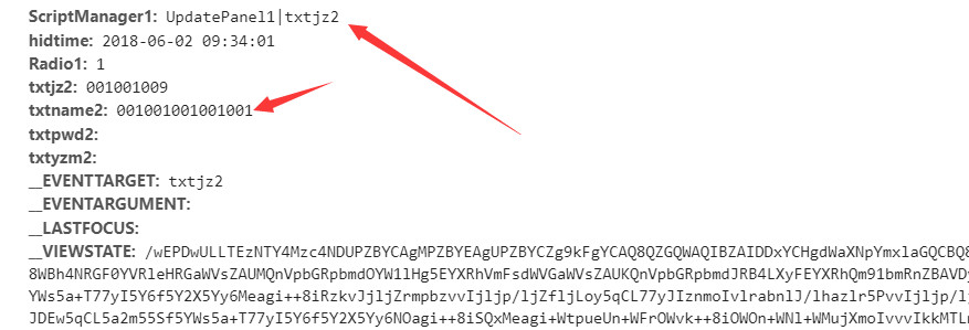 'txtname2': '001001001001001', # 这个初始化值可以随意,但不能为空