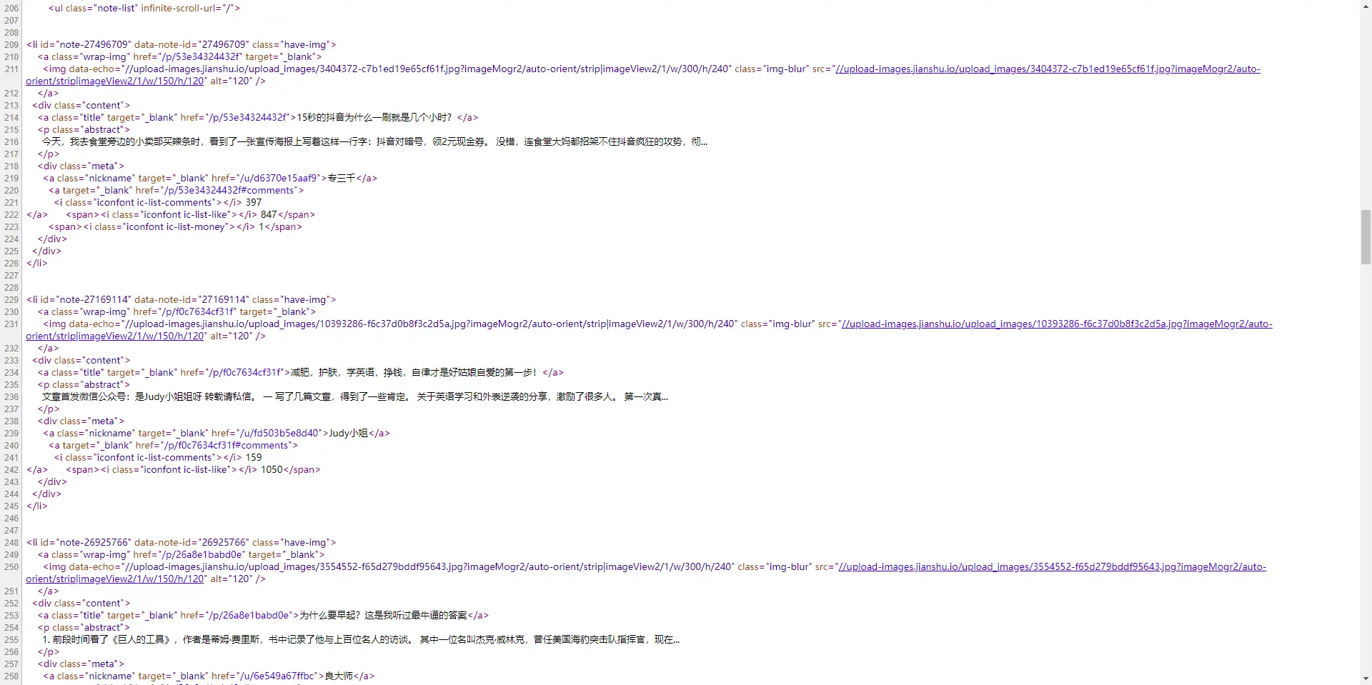 这是简书的源代码,传统方式爬即可