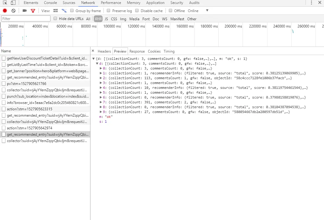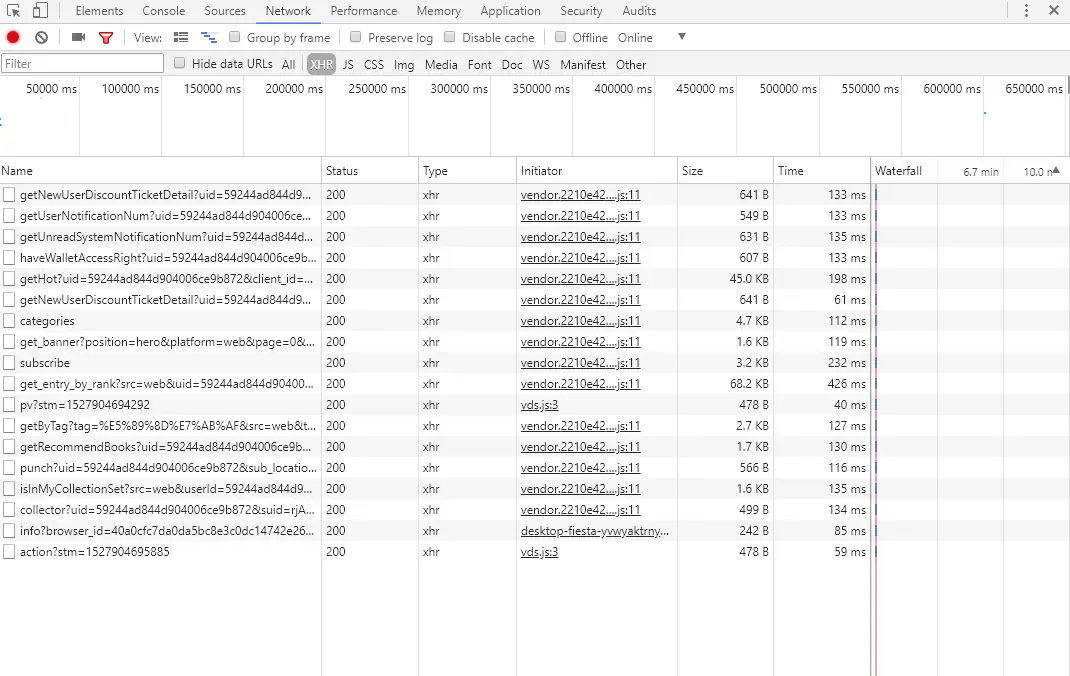 然后选择XHR,为什么选xhr不做过多的解析google、百度即可,这是ajax的一种方法,选择xhr后数据量会小很多