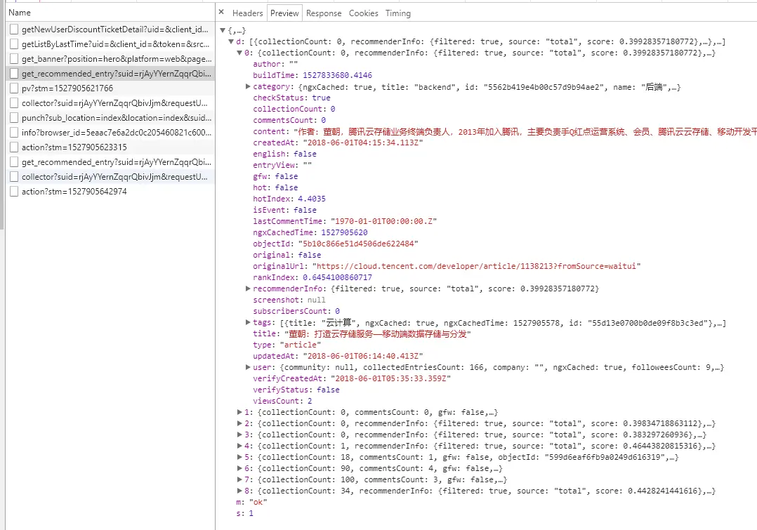 以上就是我们需要的数据,数据请求的接口地址为:https://recommender-api-ms.juejin.im/v1/get_recommended_entry? ,现在我们基本分析完了,可以写代码啦