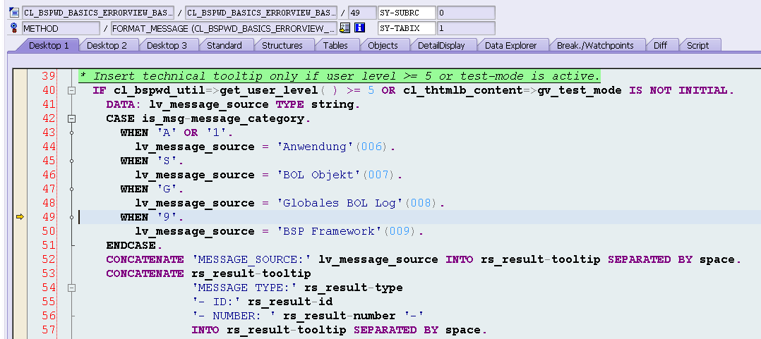User parameter里只要BSPWD_USER_LEVEL 值大于5 即可在webclient UI上显示error message的technical information:
