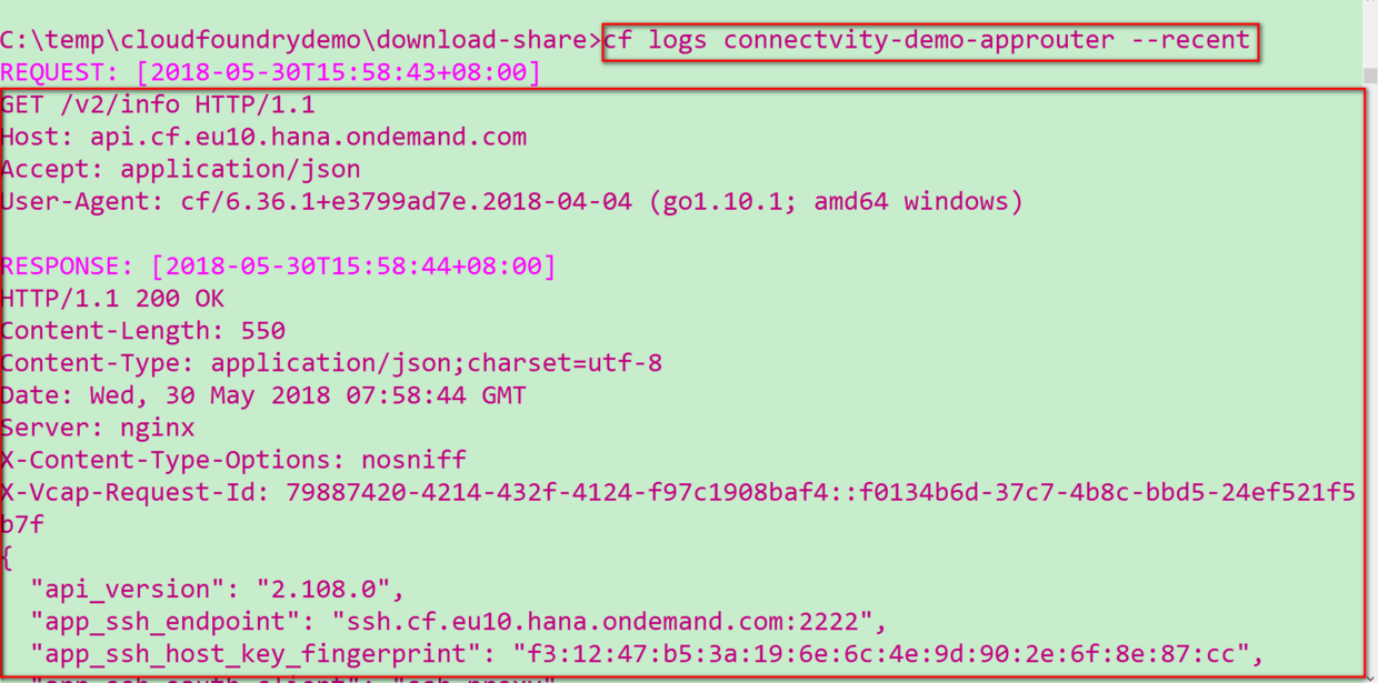 然后就能看到为了完成这个命令所发送的HTTP请求和响应。