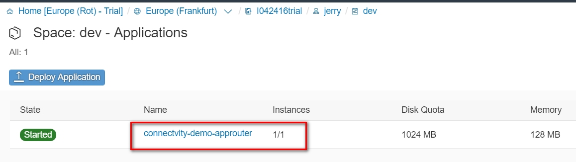 使用命令查看部署日志: cf logs connectvity-demo-approuter --recent