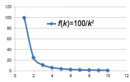考察一个网页的入向链接数为的概率(占比),其近似服从幂律分布,入向连接数k(流行度)与网页种类数的的关系为: