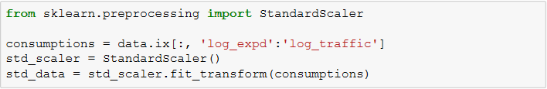 使用pandas提供的函数可以很方便地对字段进行标准化,使用scikit-learn也可以达到同样效果,而且在应用中可能更加方便,比如我们对已进行了对数转换的收入、通话时长、流量消费(接近正态分布)进行学生标准化的例子如下: