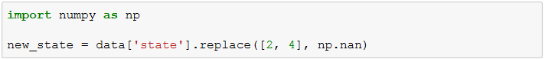通过图形可以非常容易发现“2”与“4”这两种状态的用户很少,如果对照业务规则,发现这两种状态是不应当出现的,那么可以删除这些记录。另外一种可选的方式是先把这两种状态清空,后期再用合适的方法填补,代码如下。