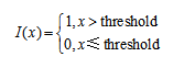 二值化,顾名思义就是将一个字段转换为仅有两个可能值。二值化通过设定一个阈值,原字段大于阈值的被设定为1,否则为0,即转换函数为指示函数: