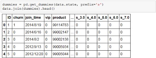 在pandas中可以使用get_dummies函数来对分类变量进行哑编码,新生成的哑变量与原变量的分类水平数相等,对照组可自行选择,get_dummies使用方法如下所示:
